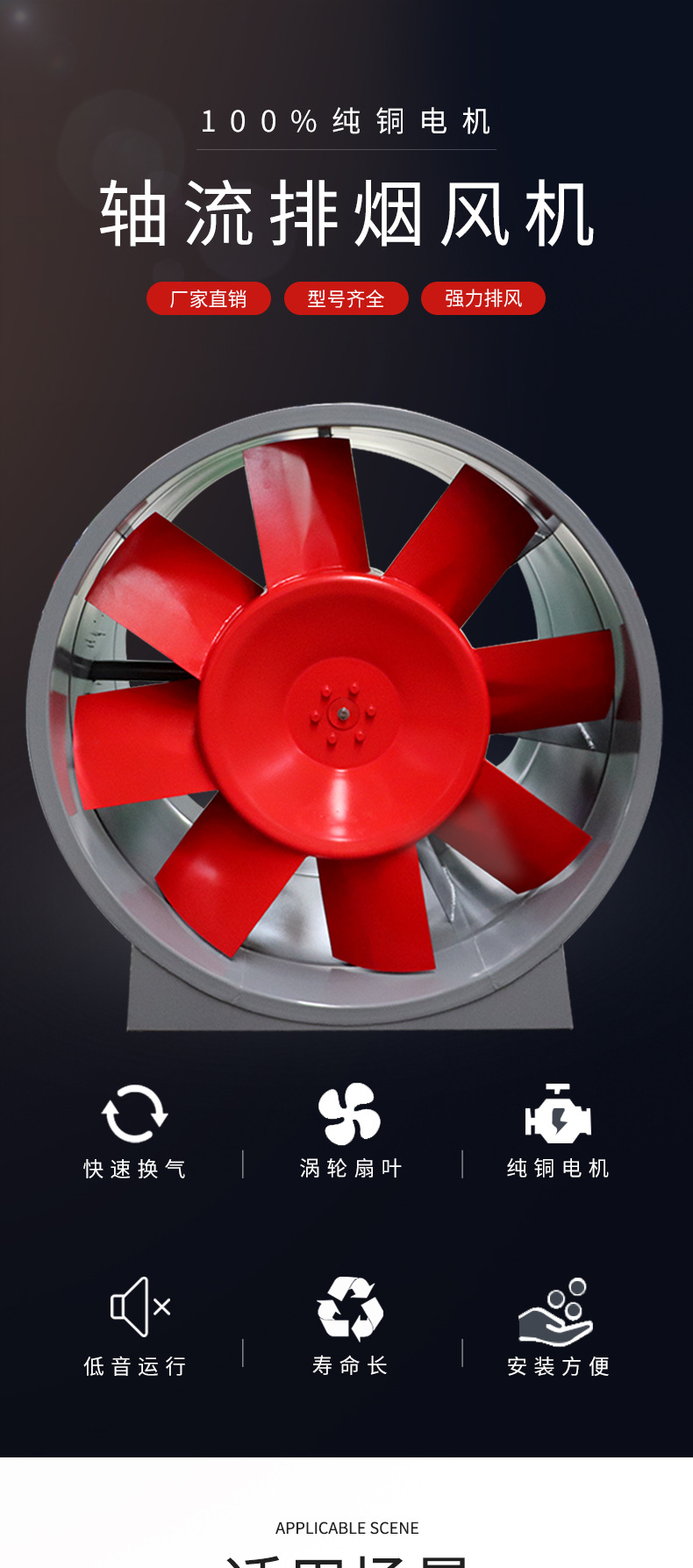高溫排煙風機、低噪聲、節(jié)能型、混流通風機,是介于軸流